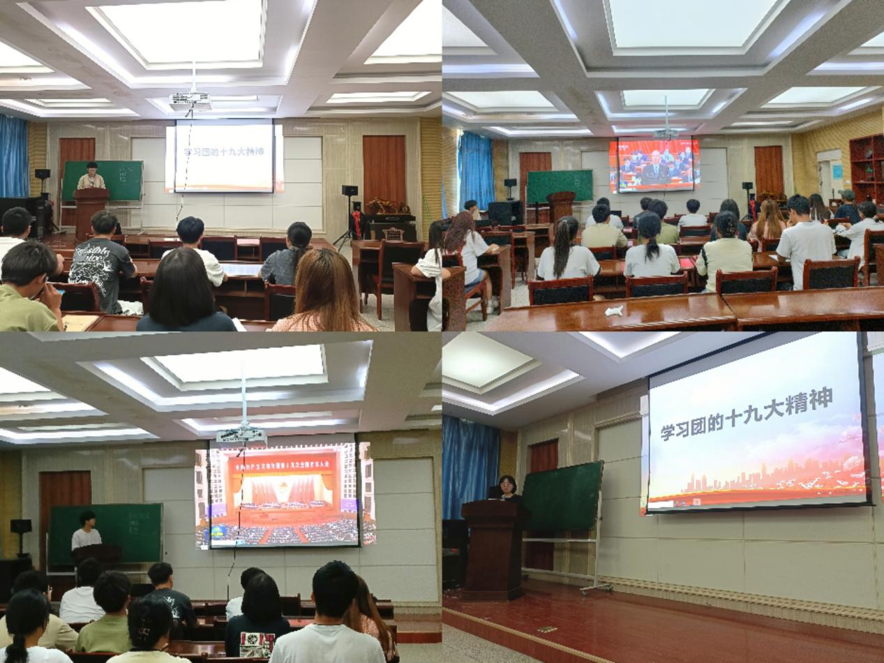 各团支部集体学习了习近平总书记同团中央新一届领导班子集体谈话时的重要讲话、蔡奇同志在中国共产主义青年团第十九次全国代表大会的致词、习近平总书记关于青年工作的重要论述等重要内容。集体学习结束后,各团支部成员展开了热烈讨论,大家纷纷表示,将持续加强学习宣传贯彻党的二十大、团的十九大会议精神,以实际行动为全面建设社会主义现代化国家,全面推进中华民族伟大复兴而团结奋斗。