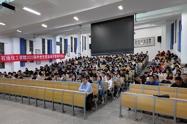 杨金明从认清形势、把握趋势、知己知彼、从容应对四个方面,详细讲解毕业生就业的机遇与形势,鼓励毕业生积极转变就业观念,抢抓机遇,充分准备、积极就业、尽早就业、高质量就业;希望毕业生理性客观评价自我,根据社会需求、自身条件、个人意愿科学选择确定就业目标;要求毕业生熟练掌握校园招聘会流程,积极参加面试培训,不断积累求职面试经验,提高求职成功率。