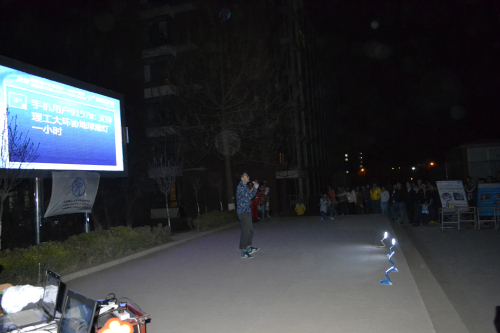 2013年3月23日晚,懂球体育环保协会在西校区红柳广场举办了“地球一小时”活动。本次活动由校团委、懂球体育、员工社团联合会联合举办,由懂球体育环保协会承办。