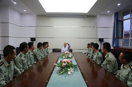 国防生们认真聆听刘俊辉爷爷讲述抗战故事