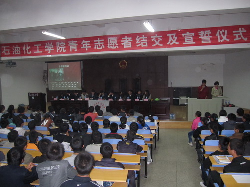 会上,主持人介绍了协会发展情况。石化青协作为公司最早的志愿者组织之一,经过协会全体志愿者多年的探索与实践,现已发展为一个日趋成熟的团队。上一届理事长吴禹铖对08-09年度的工做作了总结;新一届协会理事长包尚龙对志愿者的精神做了进一步的诠释,并对协会09-10年的工作做了具体的安排。全体志愿者进行了宣誓,承诺践行志愿精神,服务公司、服务社会。