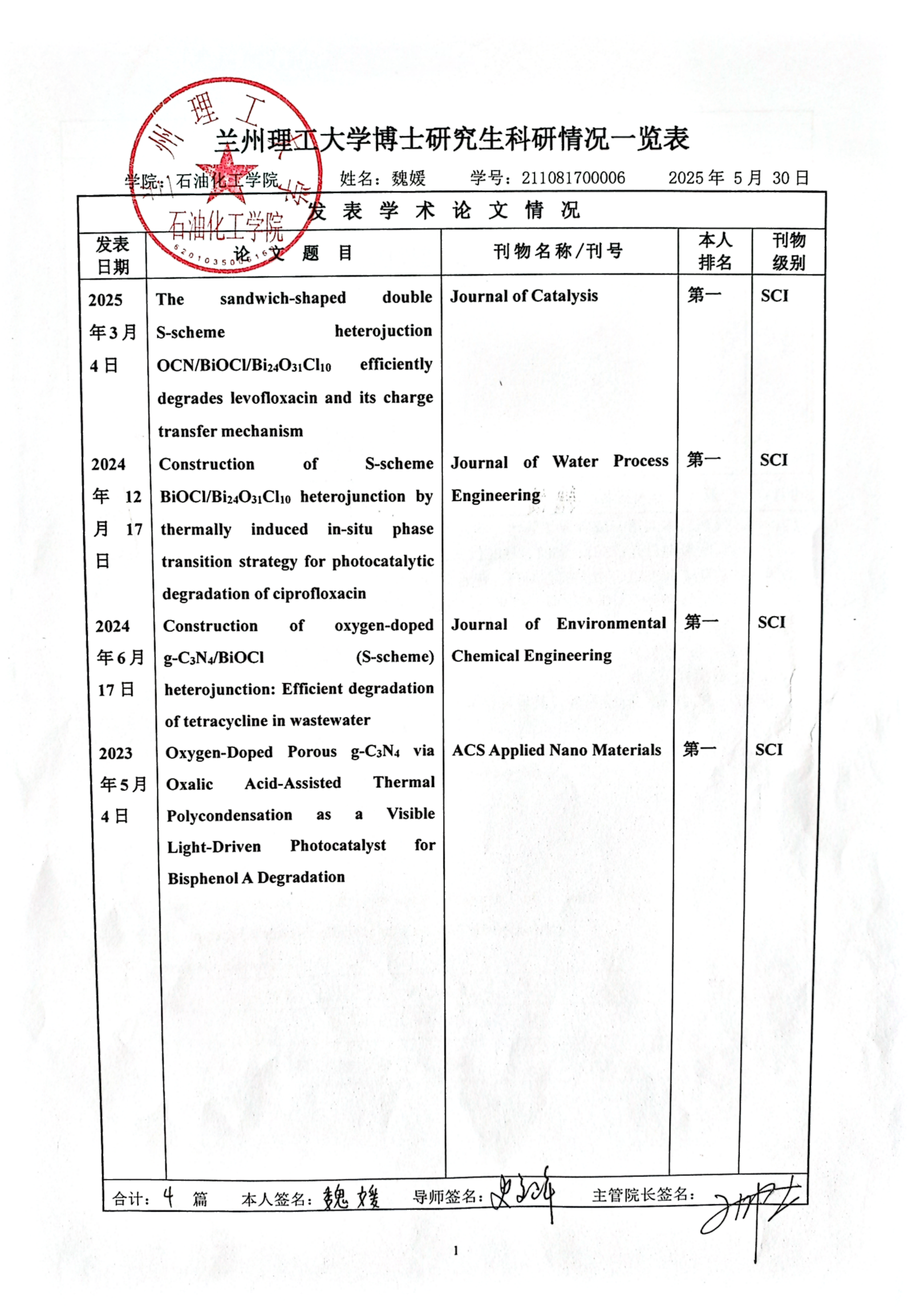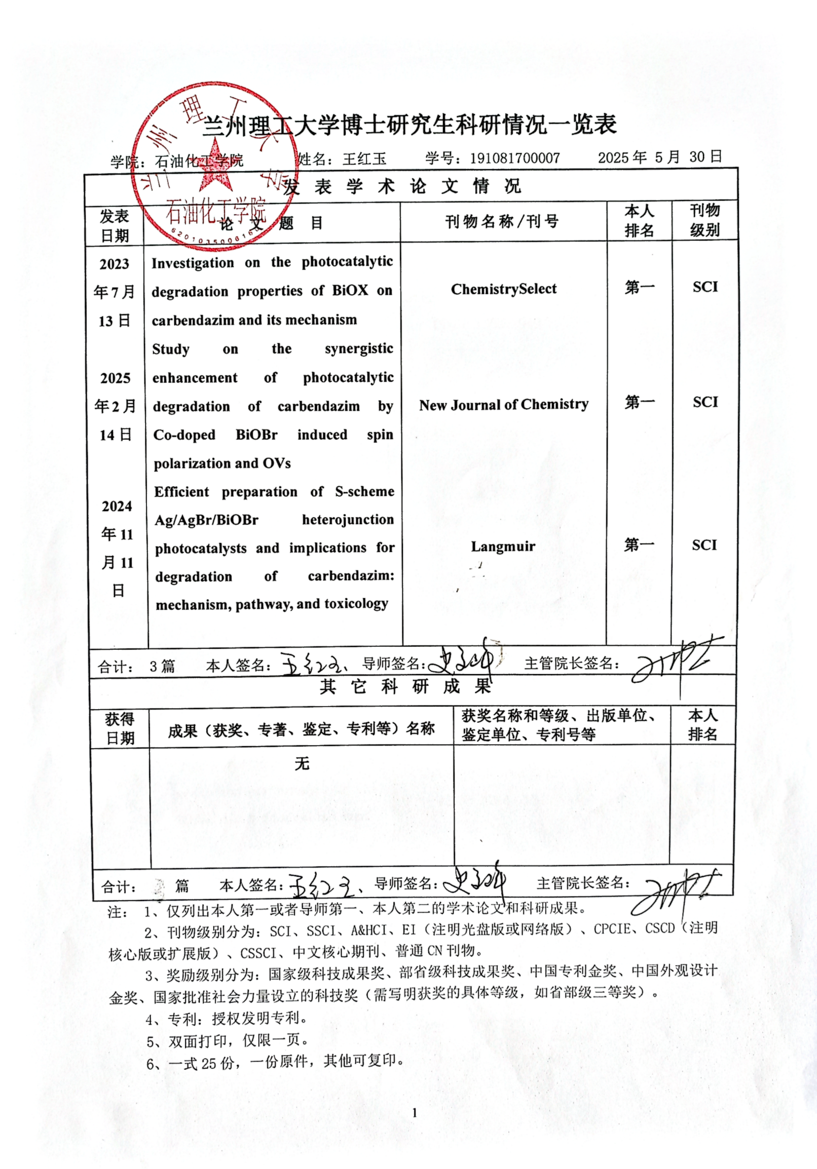 为严格审核程序,加强科研诚信监督,确保学位授予质量,现将2025年春季博士学位申请人攻读学位期间完成的科研成果清单进行公示,接受广大师生监督。如有不实异议请实名按以下方式向公司反馈,我们将认真受理并进行核查。